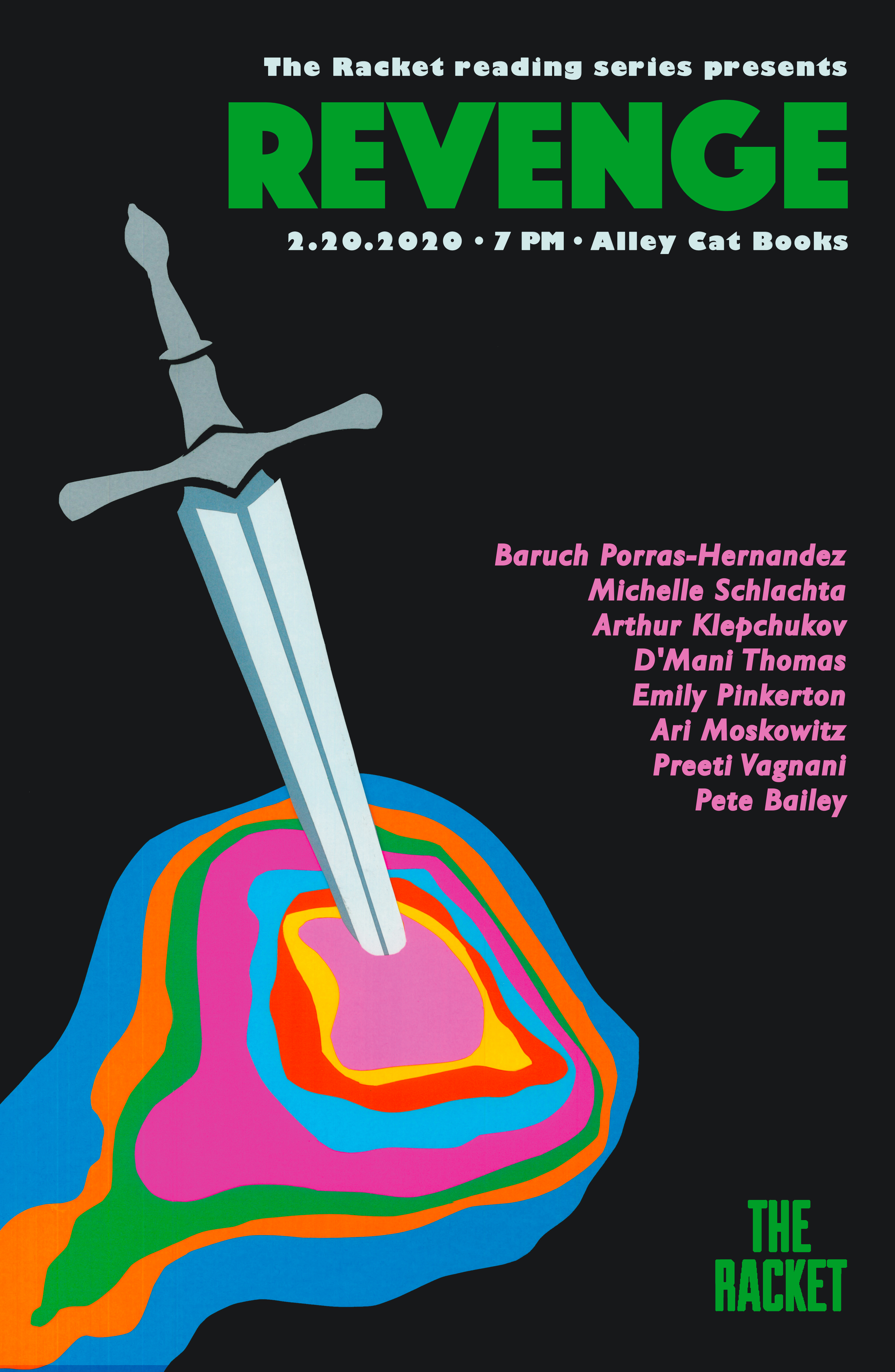 On my last visit to San Francisco, Noah Sanders invited me to read at his reading series The Racket. The February theme was REVENGE with an awesome poster to boot: